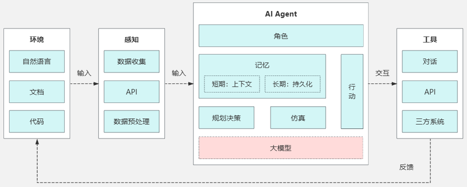 在学术界和工业界的主流定义中,一个成熟的AI Agent通常包含以下四大核心模块:
