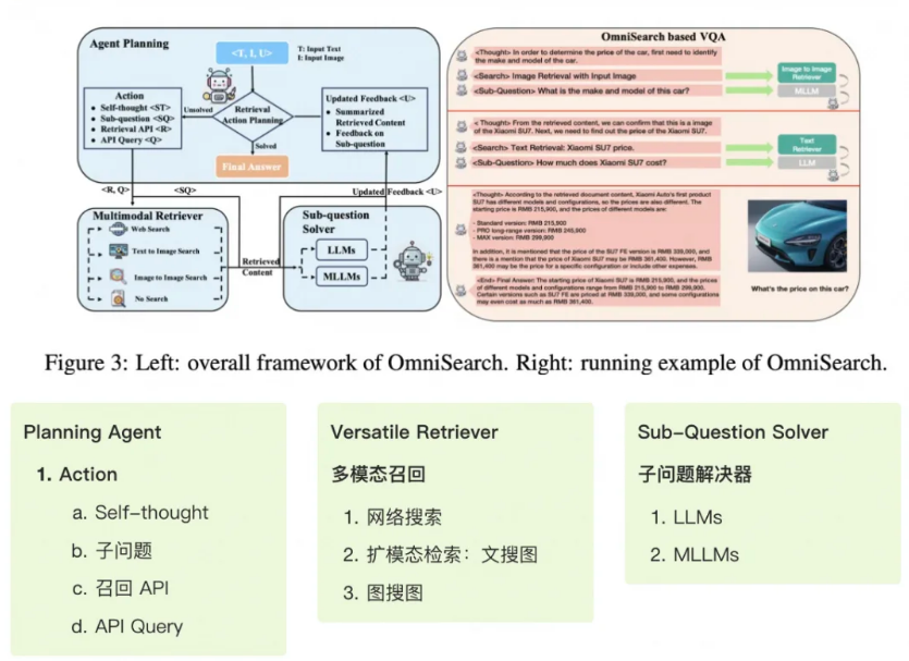 例如,在回答汽车价格问题时,模型会先通过图像检索确定汽车品牌,然后针对品牌信息进一步检索具体价格数据。