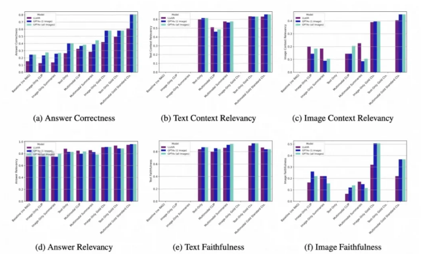 本文实验结果如下,可以发现结合文本和图像能够显著提升RAG系统的性能,尤其是在检索过程能够成功识别相关文本和图像时。