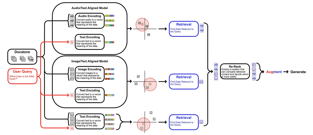 检索策略是多模态RAG系统的核心部分,主要通过高效搜索和相似性检索来提升信息检索的准确性和效率。具体方法包括: