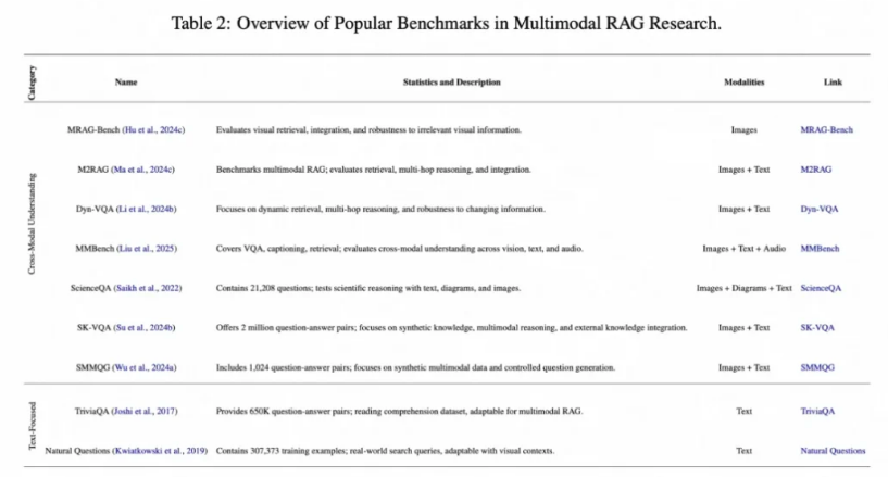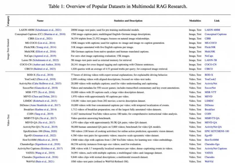 并对多模态RAG系统进行了系统且全面的分析,涵盖了数据集、评估指标、基准测试、评估方法以及检索融合、增强和生成方面的创新
