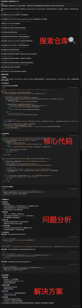 用户粘贴了一段代码,以及一张相关图片,询问"这个函数有什么问题?",然后 AI 需要调用工具来分析代码。