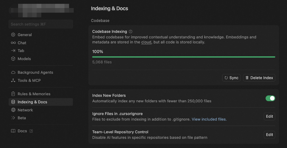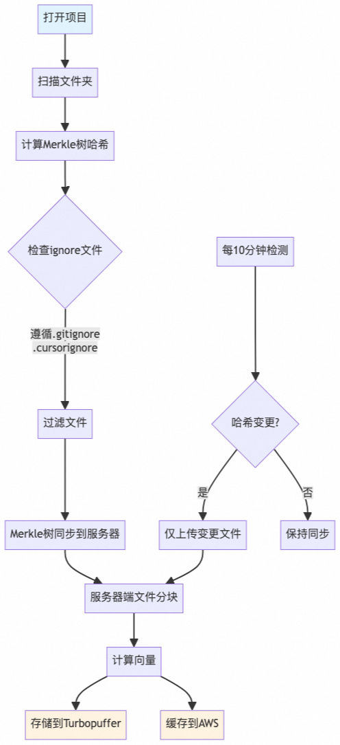 - 你的工作区文件会与 Cursor 的服务器安全同步,确保索引始终最新。