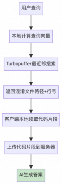 - 系统将你的查询向量与已存储的嵌入向量进行比对,找到最相似的代码片段。