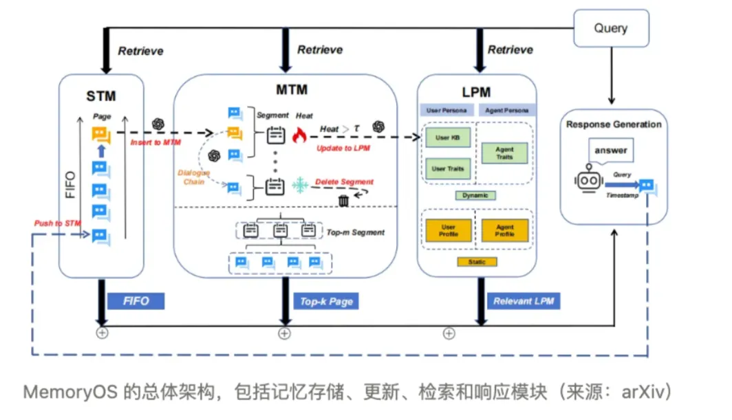 由于大模型的阈值始终有限,消息体在一定的对话回复轮次之后会超出大模型的上下文窗口限制。最简单的做法直接如基于时间衰减(近期对话优先保留)或重要性排序(关键信息优先),避免记忆冗余。下标给出一些常见的方法,更复杂的系统可以研究下memoryOS等架构。