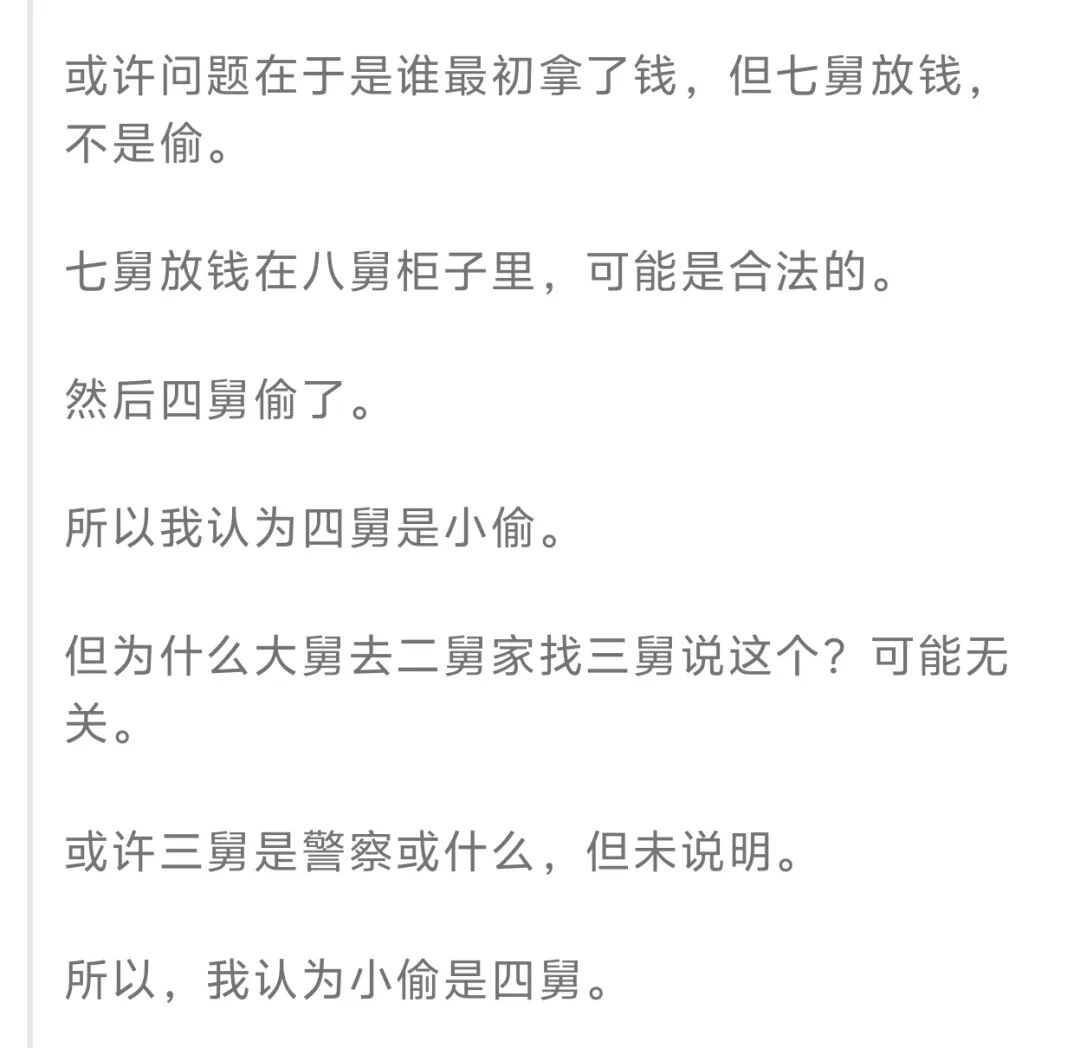 尽管整个过程有些曲折,dots.llm1最终还是成功给出了正确答案**【小偷是四舅】**。