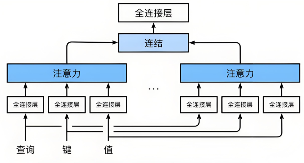 想象一下,点奶茶时你同时有三个“小助手”:一个专门盯甜度,一个专门盯品类,一个专门盯加料。Transformer的“多头注意力”就是这个逻辑——多个“注意力头”同时从不同维度分析信息,比如一个头关注“语法关系”(谁是主语、谁是宾语),一个头关注“语义关联”(哪些词是同类),一个头关注“情感倾向”(是正面还是负面),最后汇总所有维度的结果,让理解更精准。