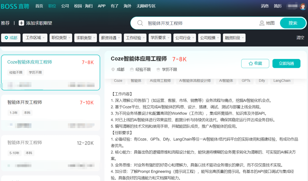 3 、低代码时代新机遇:智能体开发工程师(薪资7-20K+)