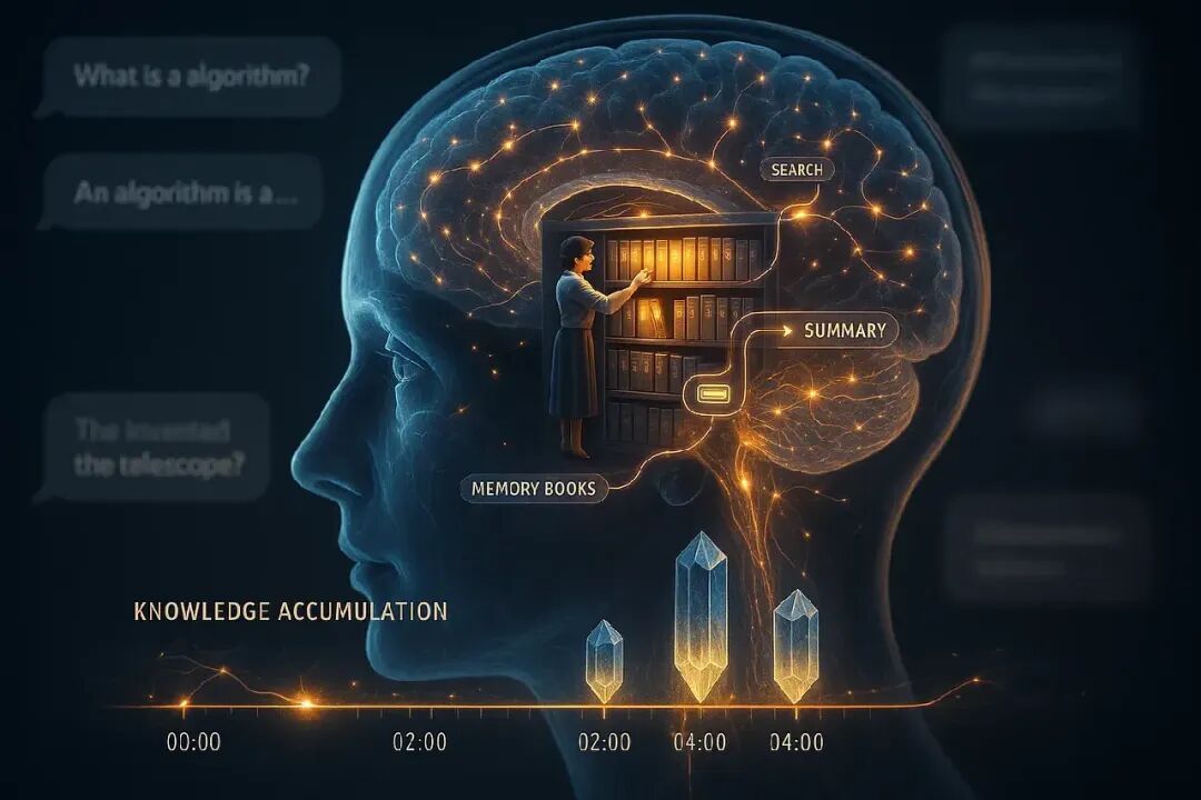 它不再让AI每次都“从零检索”,而是让AI像人类一样,在每轮互动后主动记录关键信息,随着对话深入不断丰富“笔记本”内容;后续提问时,只需调取“笔记本”里的核心总结,而非重复加载全部历史文档或对话,既保留了记忆连续性,又大幅压缩了上下文长度。