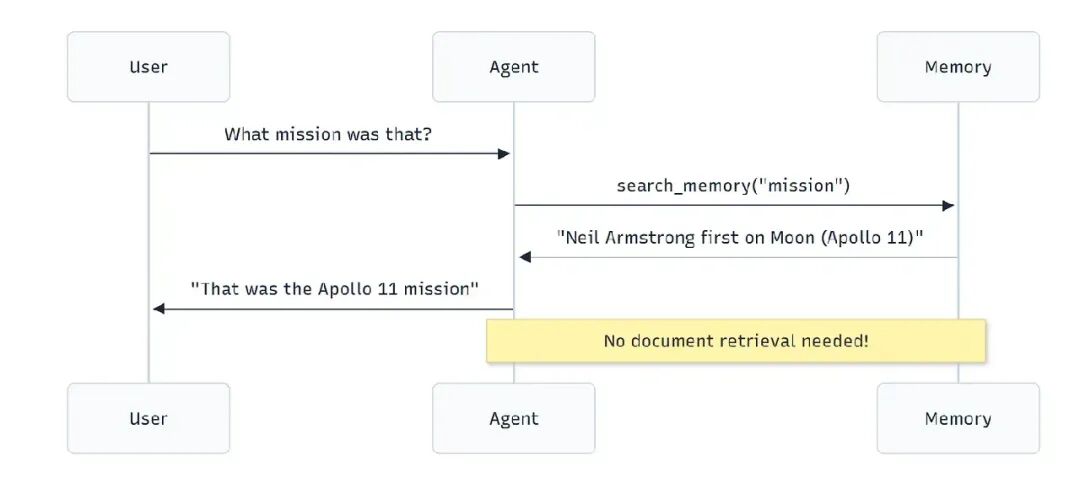 代理立即从记忆中回答——没有文档搜索,没有浪费令牌,没有延迟。