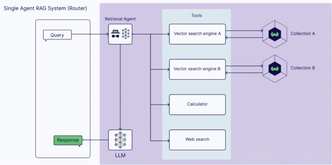 传统 RAG 是固定 “检索 - 生成” 流水线,而 Single-Agent Agentic RAG 引入智能体,可依问题类型动态选工具,更灵活强大。