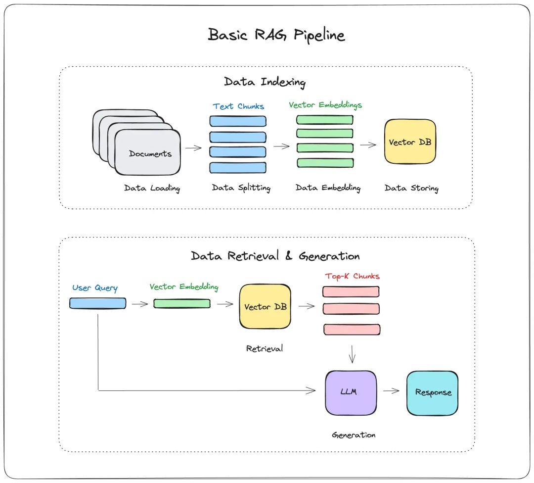 在构建更复杂的 RAG 架构之前,我们先从最基础的版本入手。整个流程可以分为以下几个关键步骤: