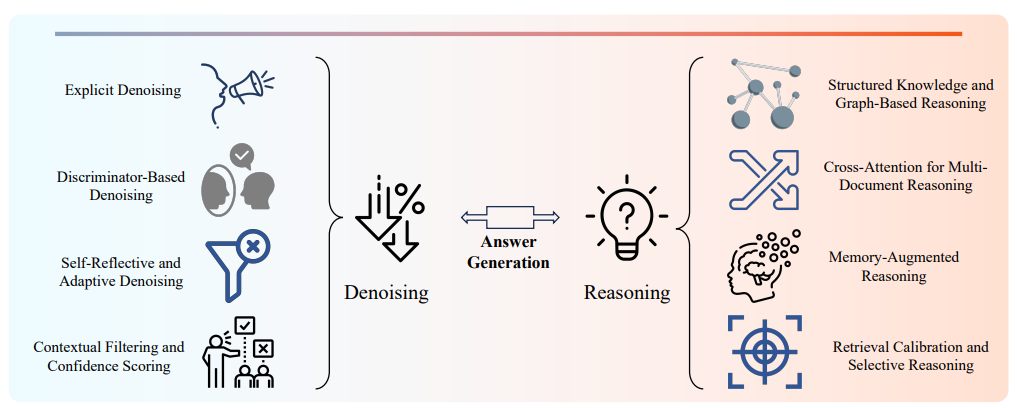 例如,当模型检索到多篇关于“量子计算”的文档时,去噪步骤会排除那些与主题无关或信息不准确的文档,而推理步骤则会从剩下的文档中提取关键信息,生成一个全面且逻辑清晰的答案。