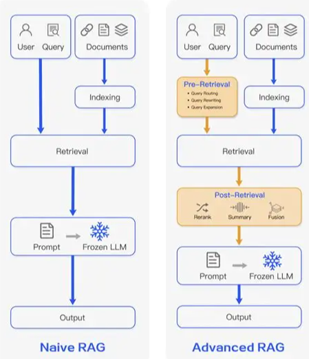 高级RAG是在Naive Rag的基础之上做了功能升级;比如说刚开始学习RAG的时候,就知道把问题直接向量化,然后丢给向量库进行相似度检索;但在实际场景中发现召回率不足,也不准确。