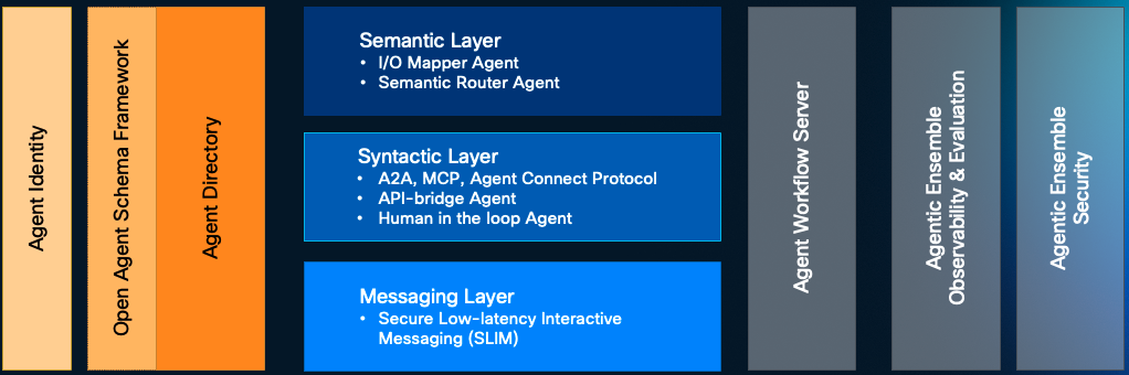 AGNTCY项目由思科旗下Outshift团队孵化,团队意识到AI智能体正处于孤立开发、无法跨组织协作的状态,基础设施存在关键缺口,这些问题阻碍了智能体实现规模化协同。AGNTCY项目通过开放、通用的基础设施,为开发者和组织提供安全的智能体身份、可靠的消息传递和端到端的可观测性,提升透明度、性能、效率和信任度。