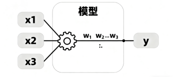 复杂场景:当输入为多个变量(x1、x2、x3…),经多步计算得到目标输出时,这套完整的计算流程即为模型,其中的W1、W2、W3…就是我们常说的参数。