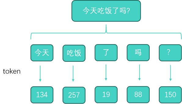 输入编码:将用户输入的文本(如 “今天吃饭了吗?”)拆分为一个个 token(词汇单元),并映射为对应的数字编码(如 “今天”=134、“吃饭”=257)。