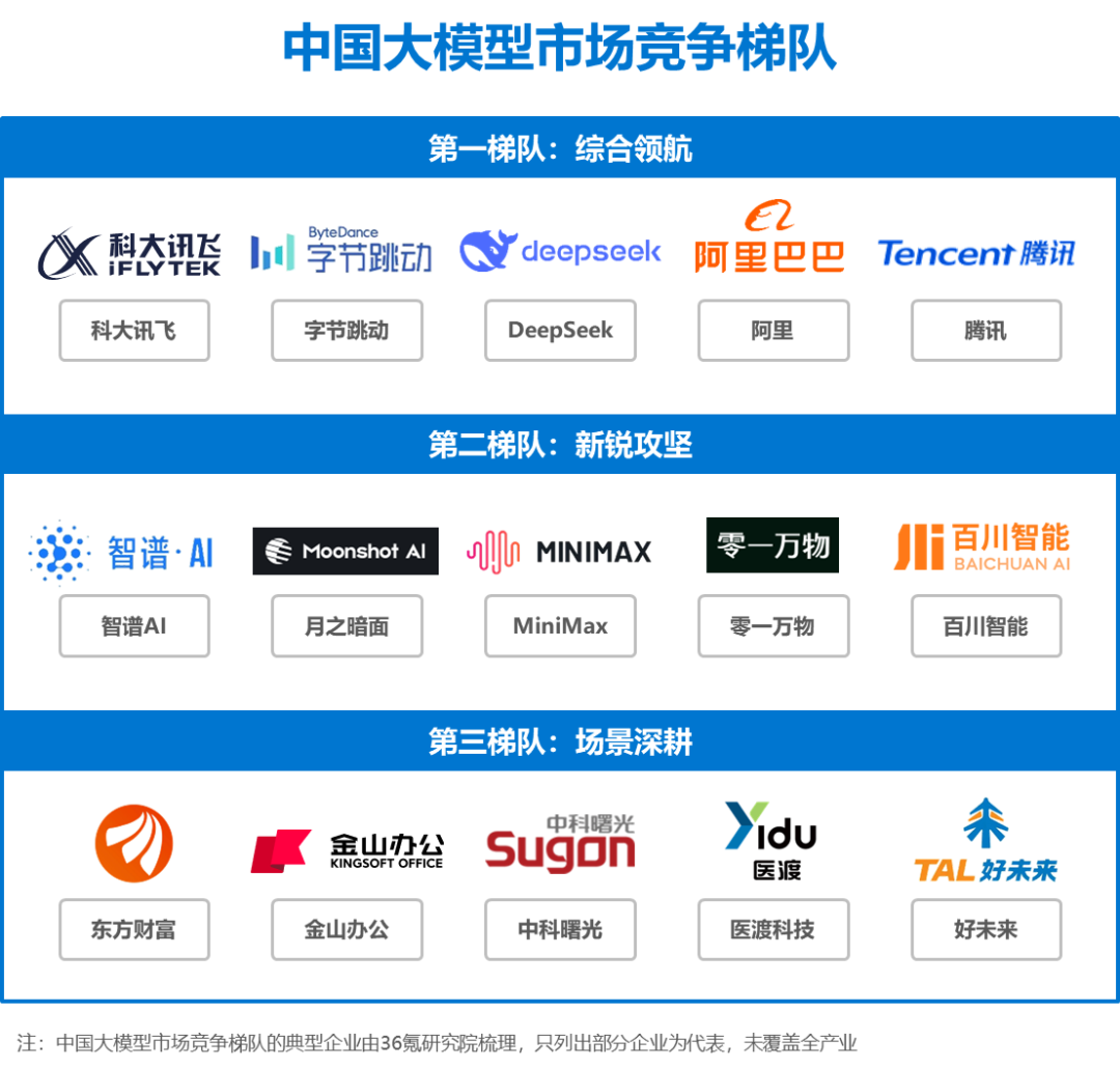 - DeepSeek、智谱 AI等新锐企业聚焦技术突破,构成第二梯队;