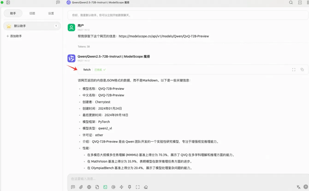 以Fetch网页内容提取 MCP为例,可以看到当我们要求 AI 助手获取相关网页信息时,AI助手调用了“Fetch网页内容获取”MCP服务的工具来完成任务。