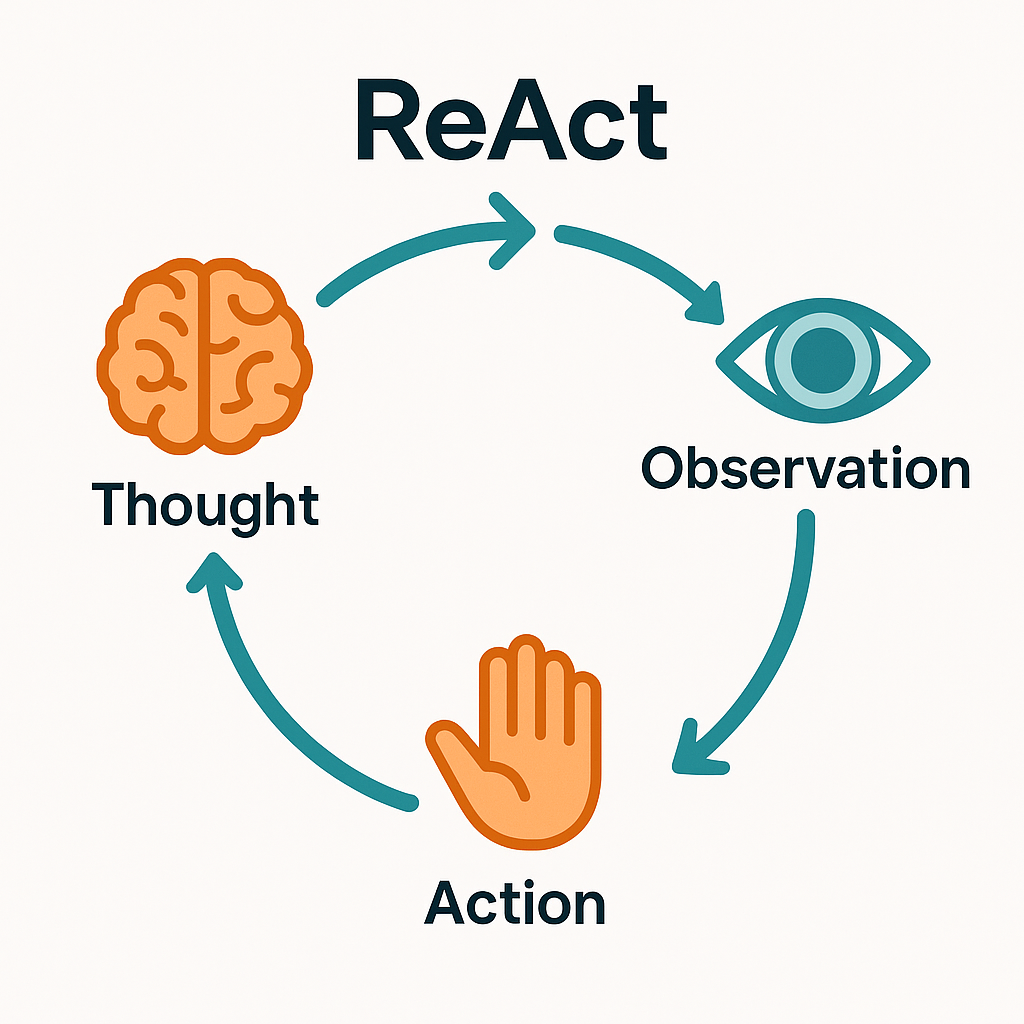 ReAct框架引入了一个看似简单却影响深远的转变[3][4]。它不再要求智能体完成所有推理后才行动,也不是不经思考就行动,而是将两者交织在一起。智能体思考、行动、观察结果,然后根据学到的信息再次思考。