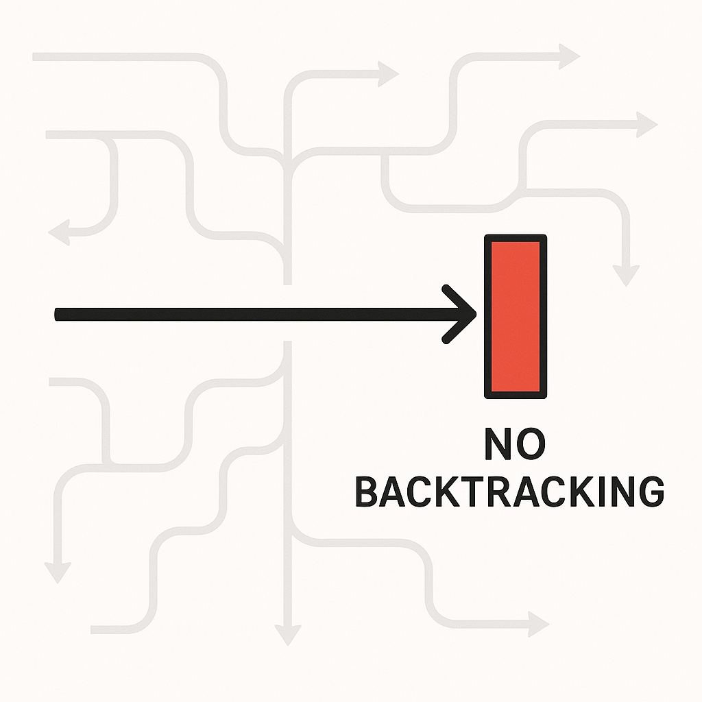 ToT的强大之处在于它的回溯能力。当一条推理路径走不通时,算法可以返回到更早的决策点,尝试不同的分支。这模拟了人类处理难题的方式:识别错误,重新考虑早期选择。