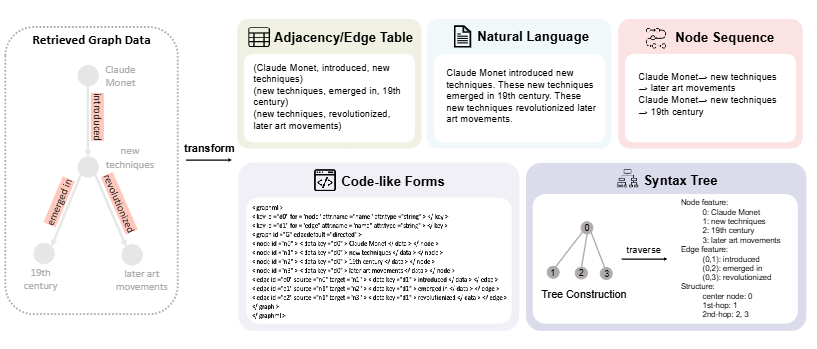 ●文本索引:将图数据转换为文本描述来优化检索过程,将知识图谱的三元组转化为自然语言。