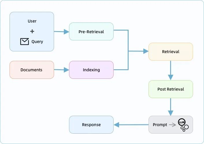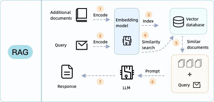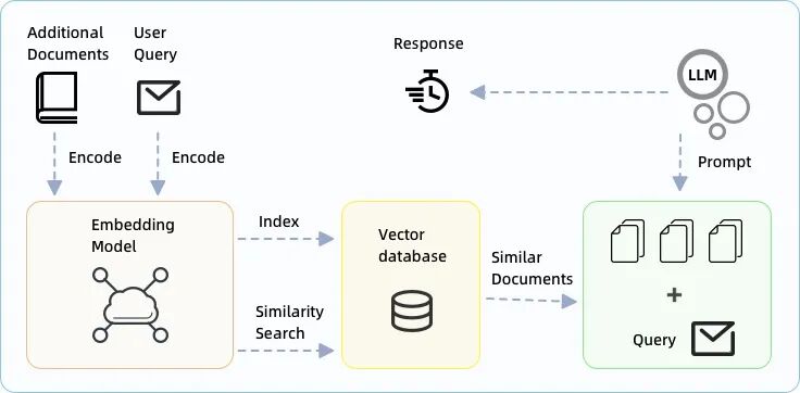 文档存储和索引:用于存储和索引外部知识库的内容,通常使用向量数据库实现。向量数据库能够高效地存储和检索高维向量数据,为快速检索提供支持。