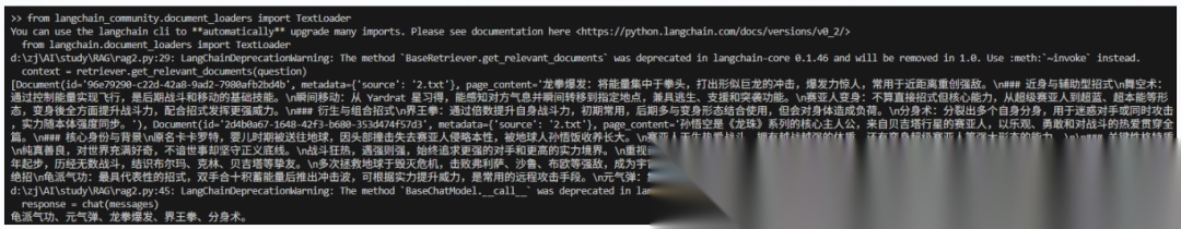 根据控制台的输出,我们可以看到系统找到的分段,并且给出了正确的结果,而且我们这里问的是卡卡罗特,而文档里面一开始说的是孙悟空,说明大模型自动识别了卡卡罗特就是孙悟空。