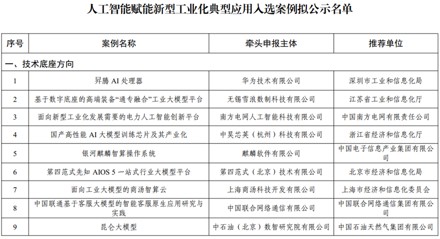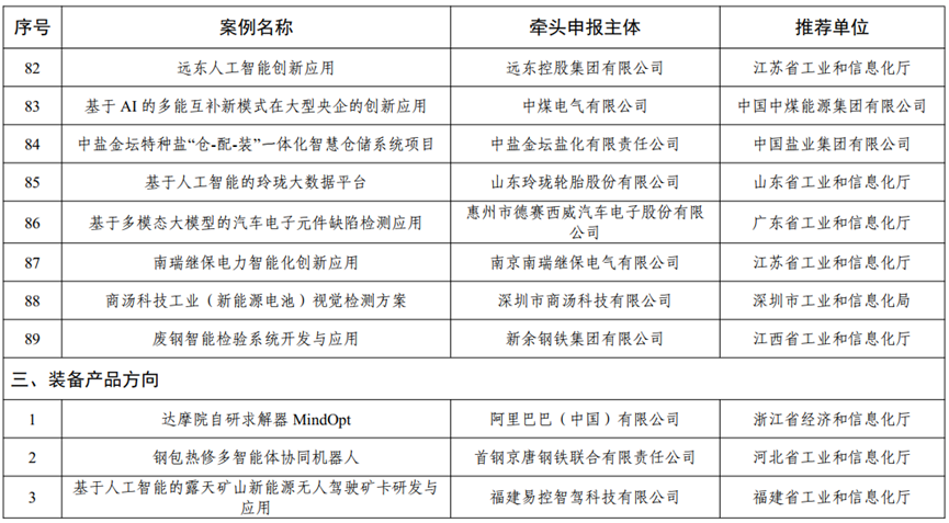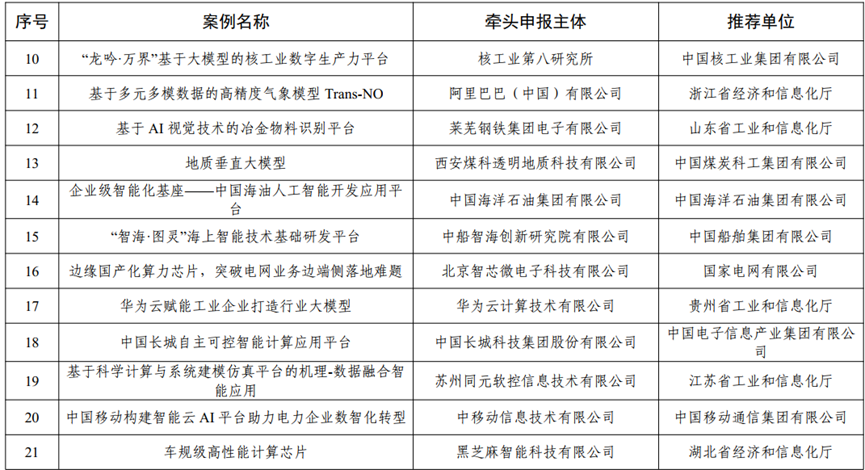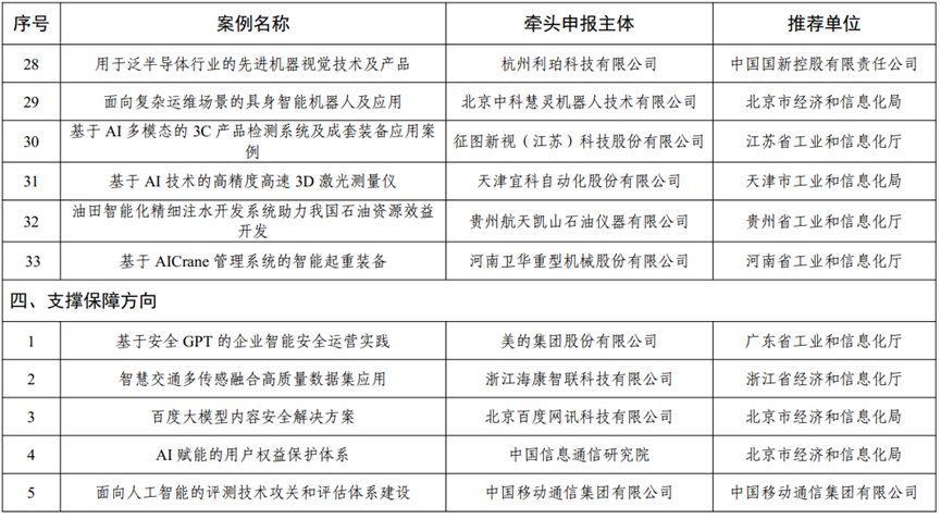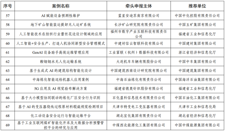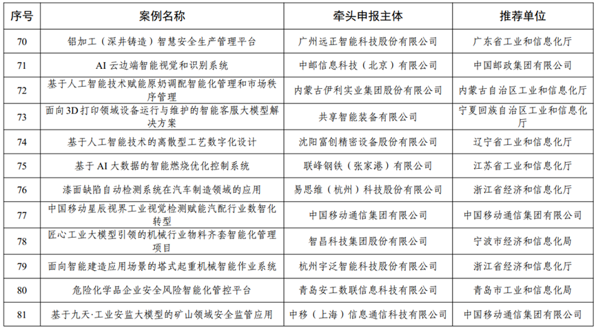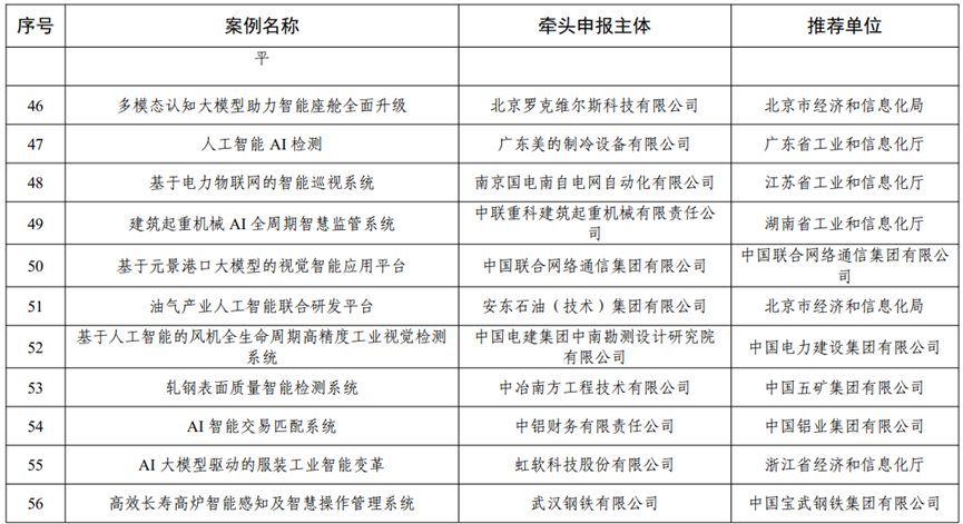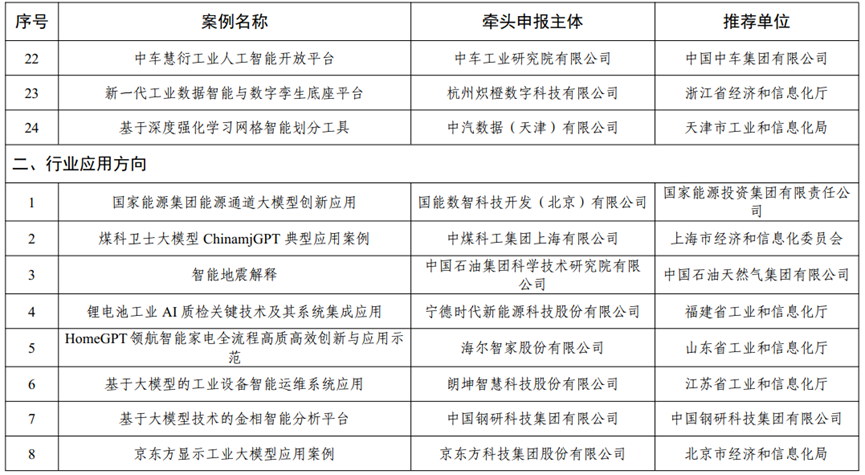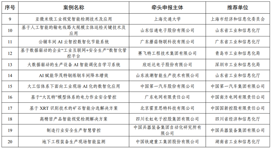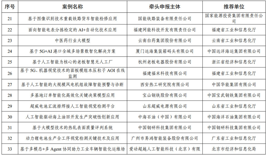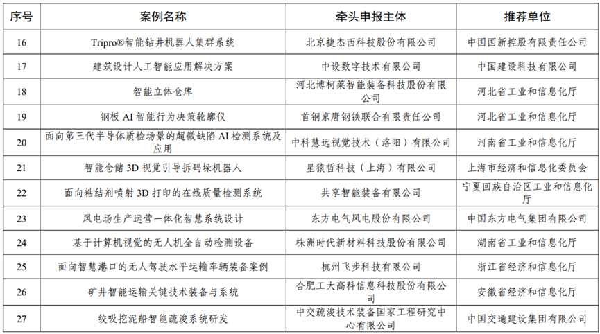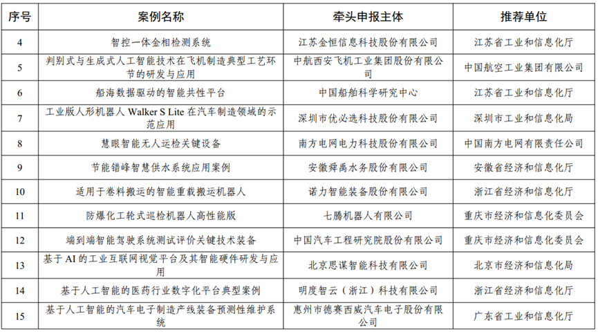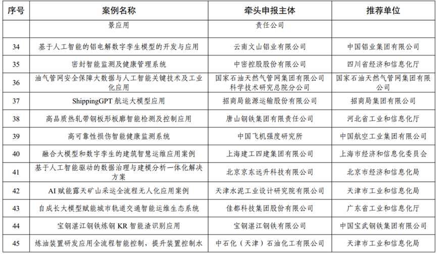 本表数据来源:工业和信息化部办公厅关于印发人工智能赋能新型工业化典型应用案例名单的通知