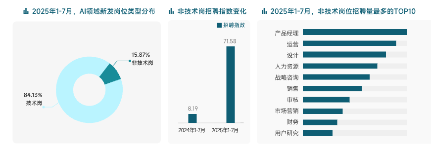 这些数字背后,是产业对AI能力的迫切渴求:互联网企业用大模型优化推荐算法,制造业靠AI提升生产效率,医疗行业借助大模型辅助诊断……而餐饮、酒店等以人工服务为核心的领域,因业务特性更依赖线下体验,对AI人才的吸纳能力相对有限。显然,AI技能已成为职场“加分项”乃至“必需品”,越早掌握,越能占据职业竞争的主动权