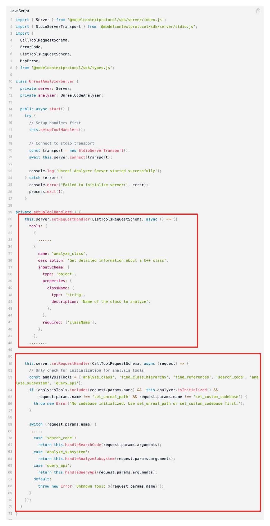 来看一下MCP Server的部分代码 (红框中就是做上面两个事, 不难理解) :