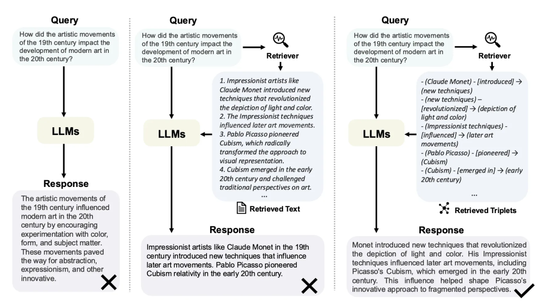 - 输出效果差: 由于缺乏对 query、文档的高级预处理、后处理,召回的文档容易包含过多或过少信息,导致最终生成的回答过于宽泛。