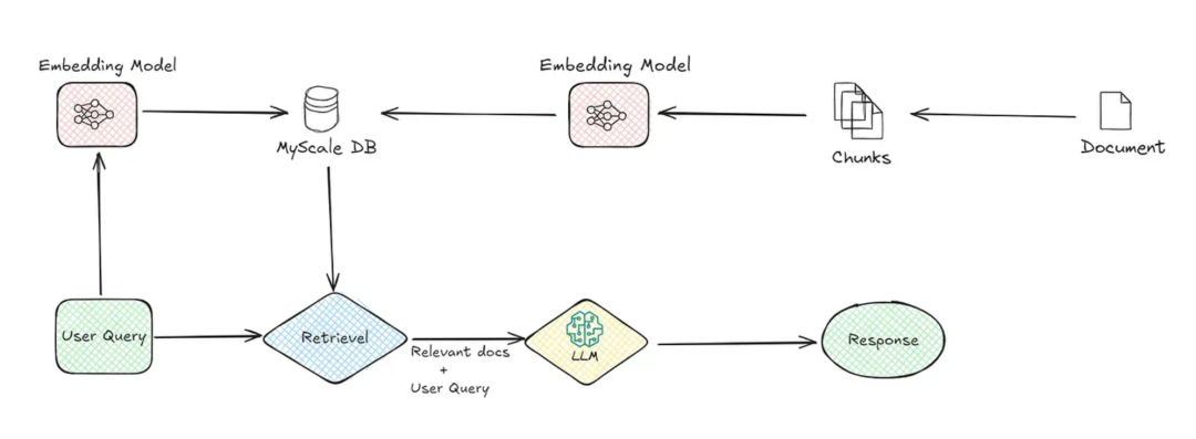 - 生成(Generation): 将检索信息提供给 LLM,生成回答。