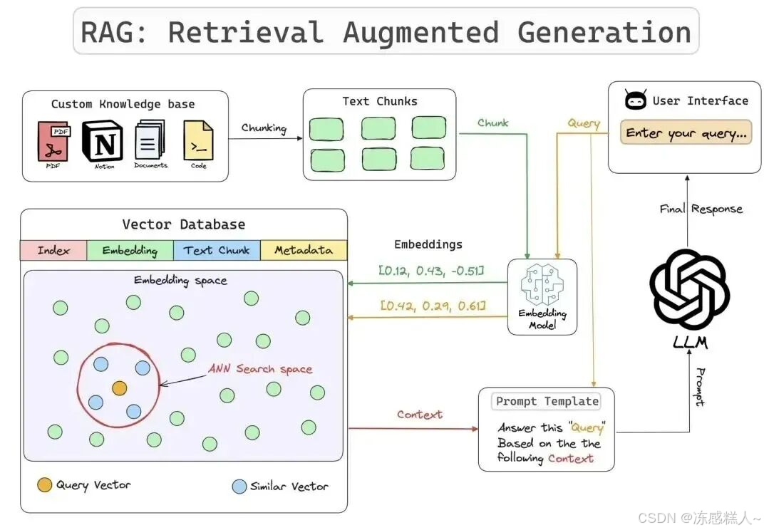 Split),将分割后的文本块(Text Chunk)利用嵌入模型转为嵌入向量,存储到向量数据库中。文档分割的质量决定了检索的准确性和生成模型的效果。