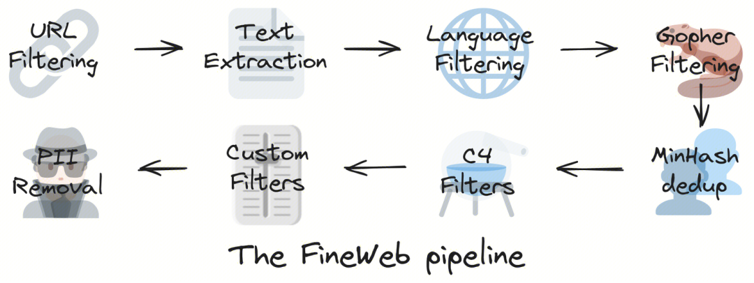 C4 过滤,C4(Colossal Clean Crawled Corpus) 数据集进行清洗和筛选的步骤,旨在从原始网页文本中提取高质量、多样化的语料,同时去除噪声、重复和低效内容。
