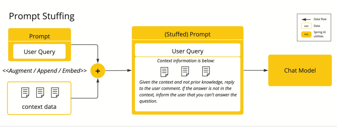 当我们开始一个LLM聊天对话,输入问题时,实际上大模型托管服务有内置的上下文信息,在我们输入信息,按下发送按钮时,大模型收到的是内置上下文 + 系统服务Prompt + 用户输入信息。