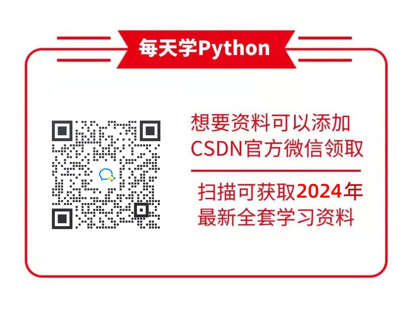👉 这份完整版的Python全套学习资料已经上传,朋友们如果需要可以扫描下方优快云官方认证二维码或者点击链接免费领取【保证100%免费】