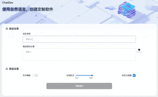 首先,就像刚才提到的,我们需要做的就只有填写好“项目名称”和“Prompt”。