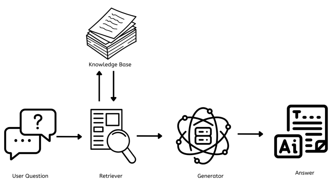 它负责找到与用户问题相关的文档或数据。当提出一个问题时,检索器会快速搜索知识库以找到最相关的信息。
