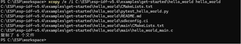 xcopy /e /i C:\ESP\esp-idf-v5.4\examples\get-started\hello_world hello_world