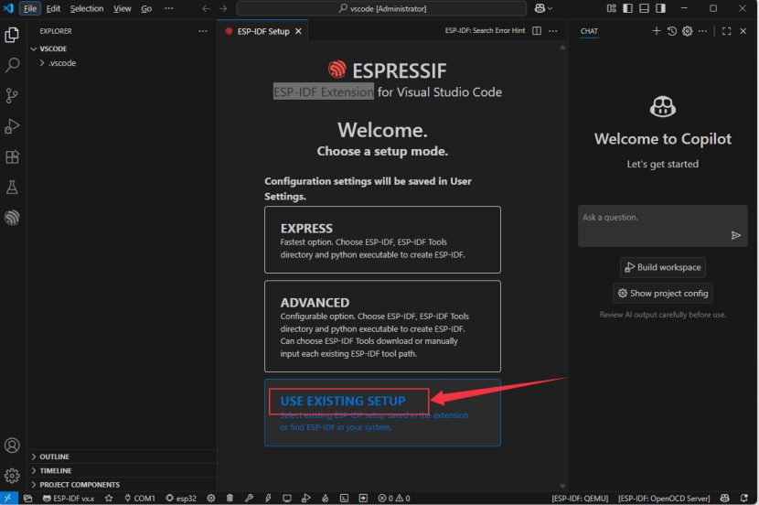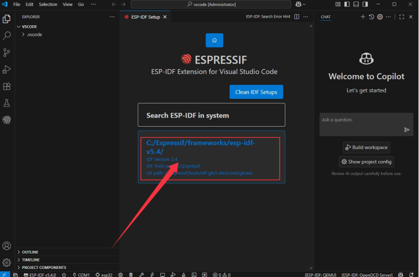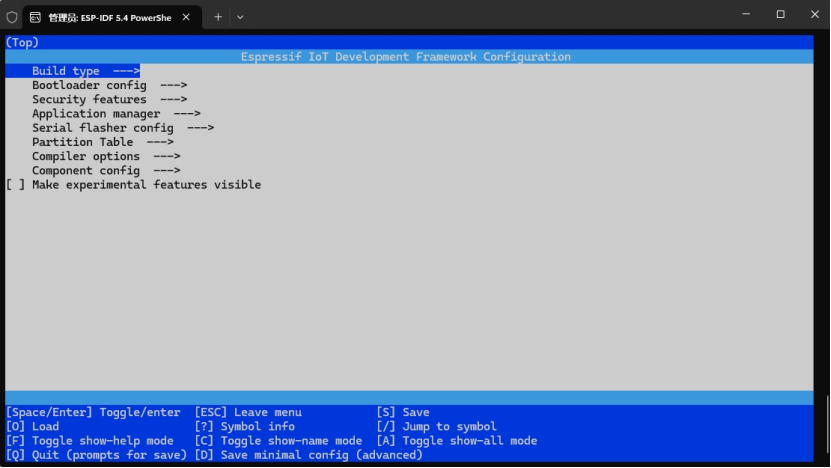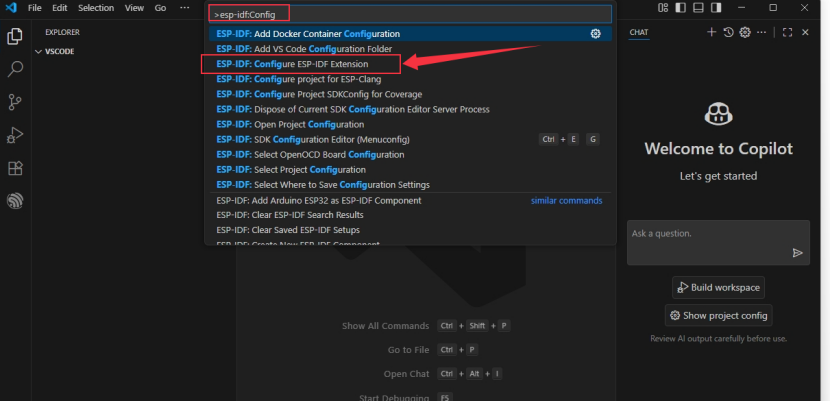 Ctrl+Shift+P打开命令面板,执行 esp-idf:configure ESP-IDF Extension