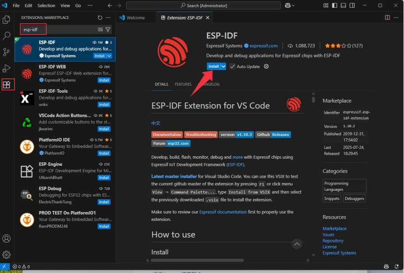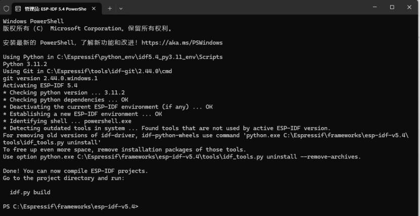 解压即可,如解压目录是C:\ESP\esp-idf-v5.4