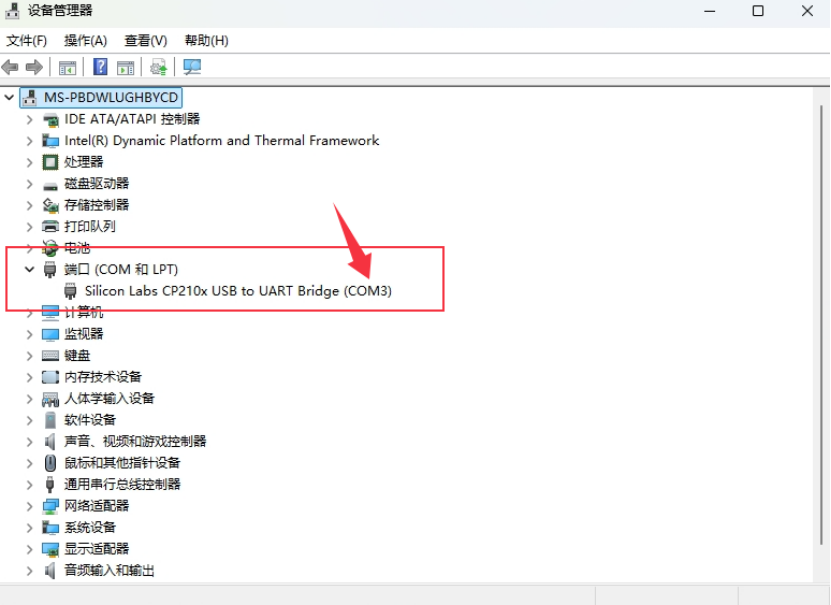 将 ESP32 开发板连接到 PC,并查看开发板使用的串口。