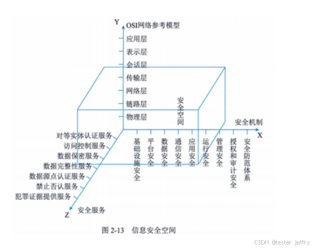 | Y轴 | OSI网络参考模型 | 信息安全技术在OSI七层模型(物理层至应用层)上实施,离开网络,安全失去意义。 | 像不同楼层的安全措施,从地基(物理层)到顶层(应用层)都要有防护。 |