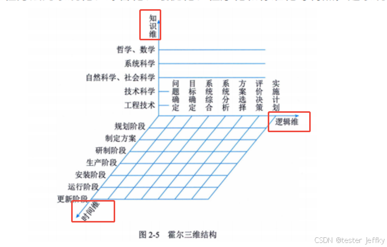 | 知识维 | 知识维需要运用包括工程、医学、建筑、商业、法律、管理、社会科学、艺术在内的各种知识和技能。霍尔三维结构形象地描述了系统工程研究的框架,对其中任意一个阶段和步骤又可以进一步展开,形成分层次的树状体系。 |