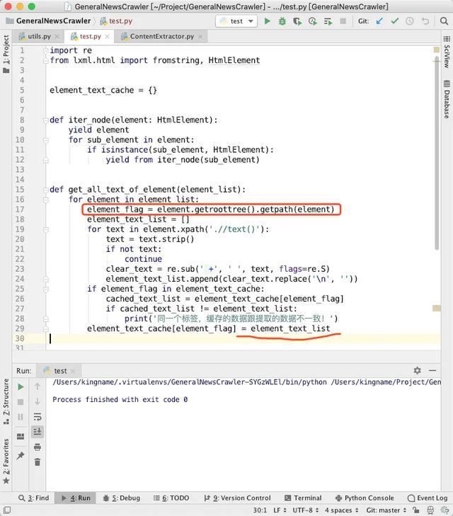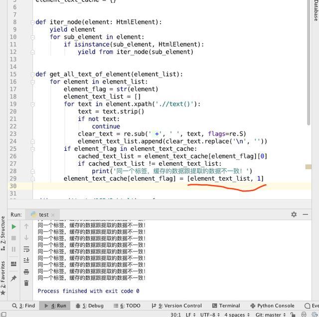 而当我使用element_text_cache[element_flag] = [element_text_list, element]时,由于每个element对象不会被回收,于是就不会出现不同的节点互相覆盖的问题,所以它的工作就符合了预期。