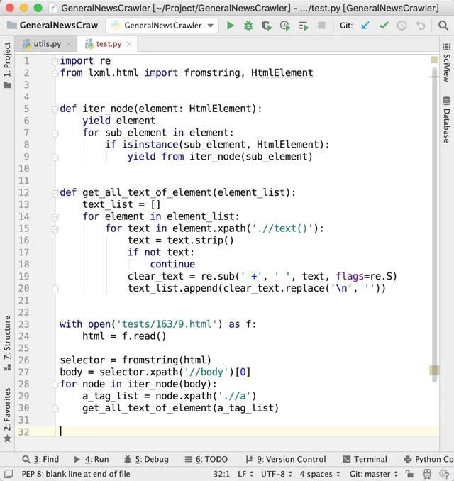 这段代码读取tests/163/9.html这个文件里面的 HTML 代码,分别获取 <body> 下面的所有标签内部的所有<a>标签中的文本。说起来可能有点绕口,我举个例子。