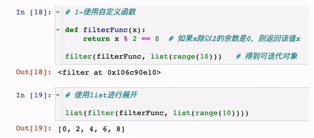 序列中的每个元素作为参数传递给函数进行判断,返回True或者False,最后将返回True的元素放到新列表中。
