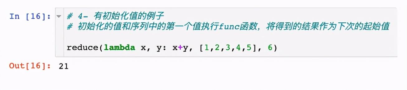 初始化值和序列中的第一个值执行func函数,将得到的结果作为下次的起始值