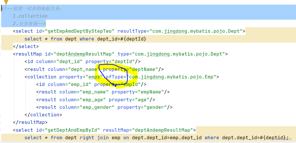 collection:处理一对多的映射关系(处理集合类型的属性)